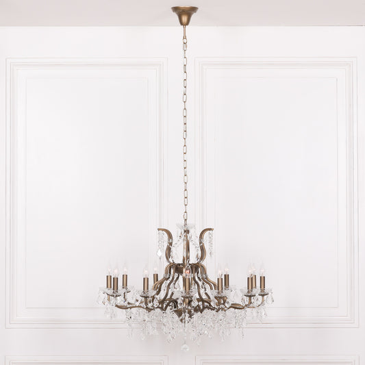 Gold 12 Branch Shallow Cut Glass Chandelier
