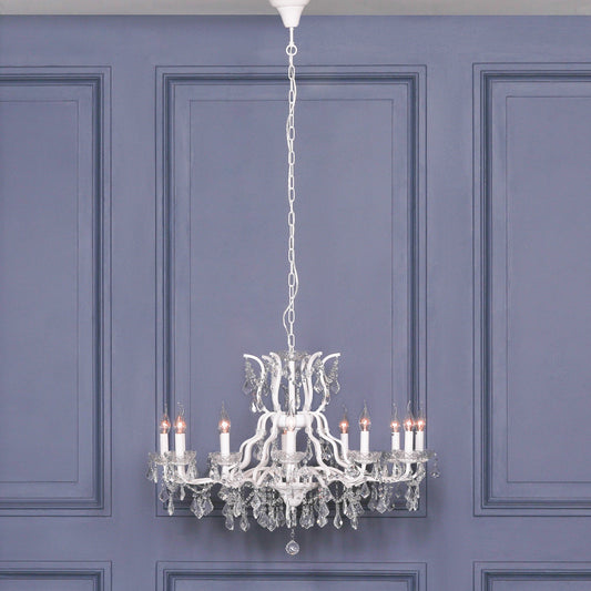 Cream 12 Branch Shallow Cut Glass Chandelier