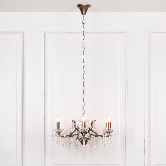 Antique Gold 6 Branch Shallow Cut Glass Chandelier
