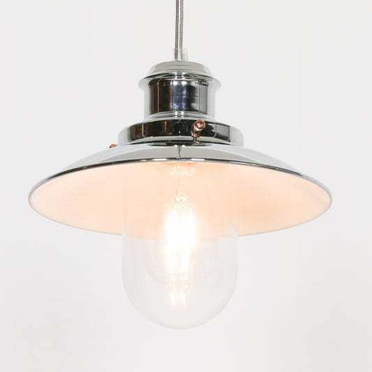 Factory Style Grey Enamel Painted Pendant Light - 46cm