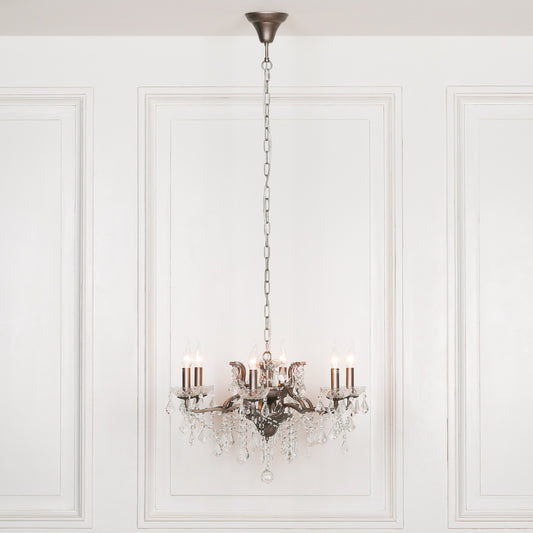 Antique Silver 6 Branch Shallow Cut Glass Chandelier