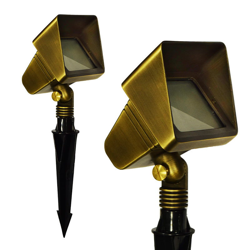 Charleston Cobra - Maxi-Flood 12v Plug & Play Brass Floodlight - Frosted Lens