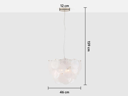 Enhance your home with the White Glass Disk Chandelier Ceiling Light. This fixture has an adjustable brass frame, which suspends an array of frosted glass shades. Designed to make your home feel homely, these delicate shades refract and deflect a warm, ambient glow, creating the perfect atmosphere for your relaxation. Style in your living rooms, dining rooms and bedrooms for a stunning effect.